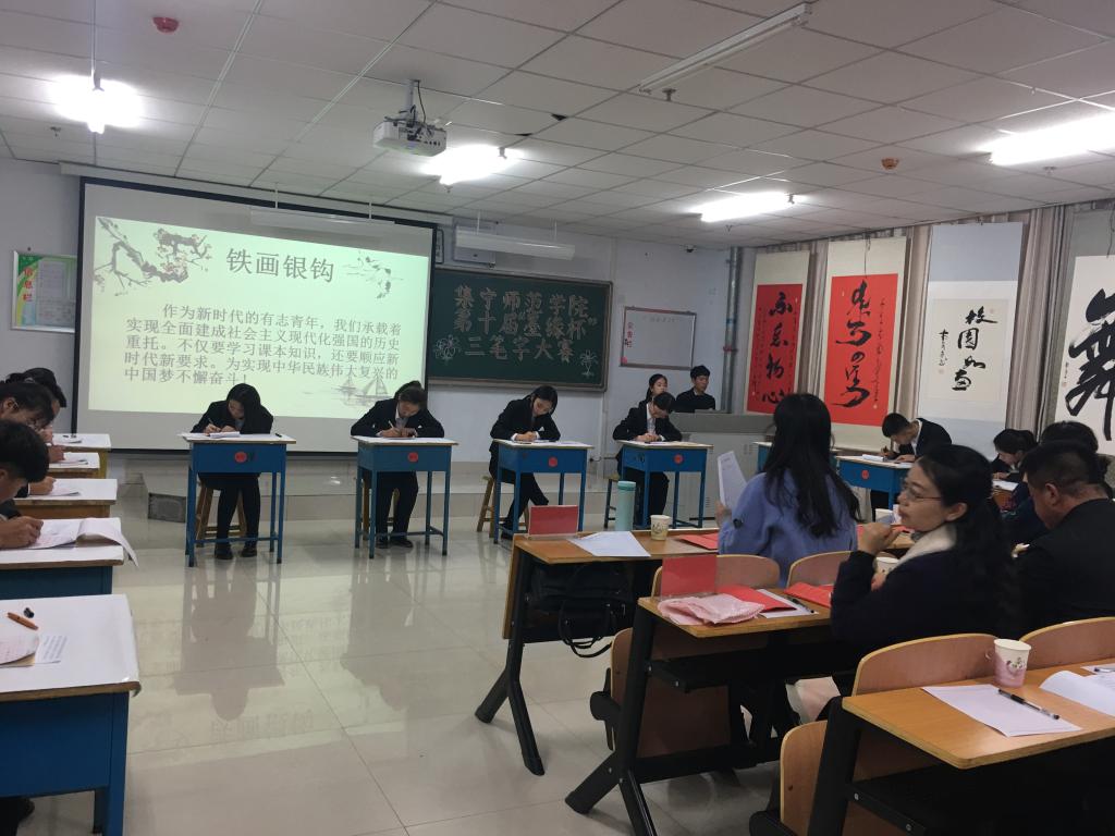 经过激烈的角逐,最终数学学院王慧敏、经济与管理学院于子轩、文学院张媛分别荣获硬笔、粉笔、毛笔组一等奖。