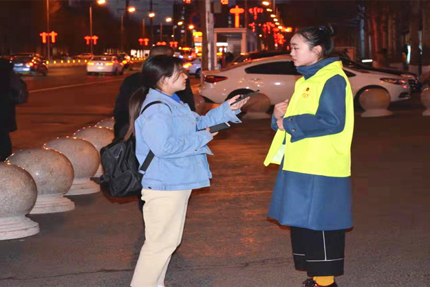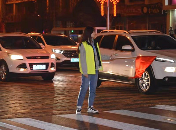 3月4日晚,PP电子游戏官网志愿者于学校西门集合,在马路口左右两边站定,挥舞红旗,指挥来往车辆、行人有秩序地过马路。每当红旗挥下,来往车辆自觉停车,让出人行道,学生迅速过马路,以致敬主动让行的车辆。