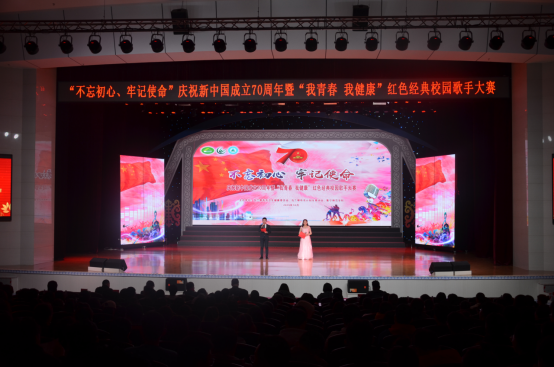 为庆祝新中国成立70周年,广泛组织开展“我和我的祖国”群众性主题宣传教育活动,弘扬爱国主义精神,10月15日,PP电子游戏平台网站与乌兰察布市卫健委、计生协在PP电子游戏官网泉山校区逸夫楼多功能报告厅联合举办“不忘初心、牢记使命”庆祝新中国成立70周年暨“我青春 我健康”红色经典校园歌手大赛。