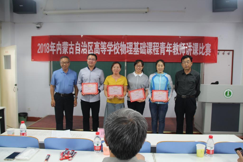本次比赛,内蒙古大学的等全区8所高校选派优秀青年教师参加。PP电子游戏官网物理学院经过选拔,派出两位教师参加比赛。比赛内容涵盖2010版《理工科类大学物理课程教学基本要求》中的A类要求的74个知识点(力学7条,振动与波9条,热学10条,电磁学20条,光学14条,狭义相对论力学基础4条,量子物理基础10条),参赛教师根据抽签决定具体的讲课比赛内容,现场限时备课(讲课时间为20分钟,备课时间为1小时,其间不准使用任何通讯设备)。经过激烈的角逐,呼和满都拉荣获一等奖,杨洪涛荣获二等奖。