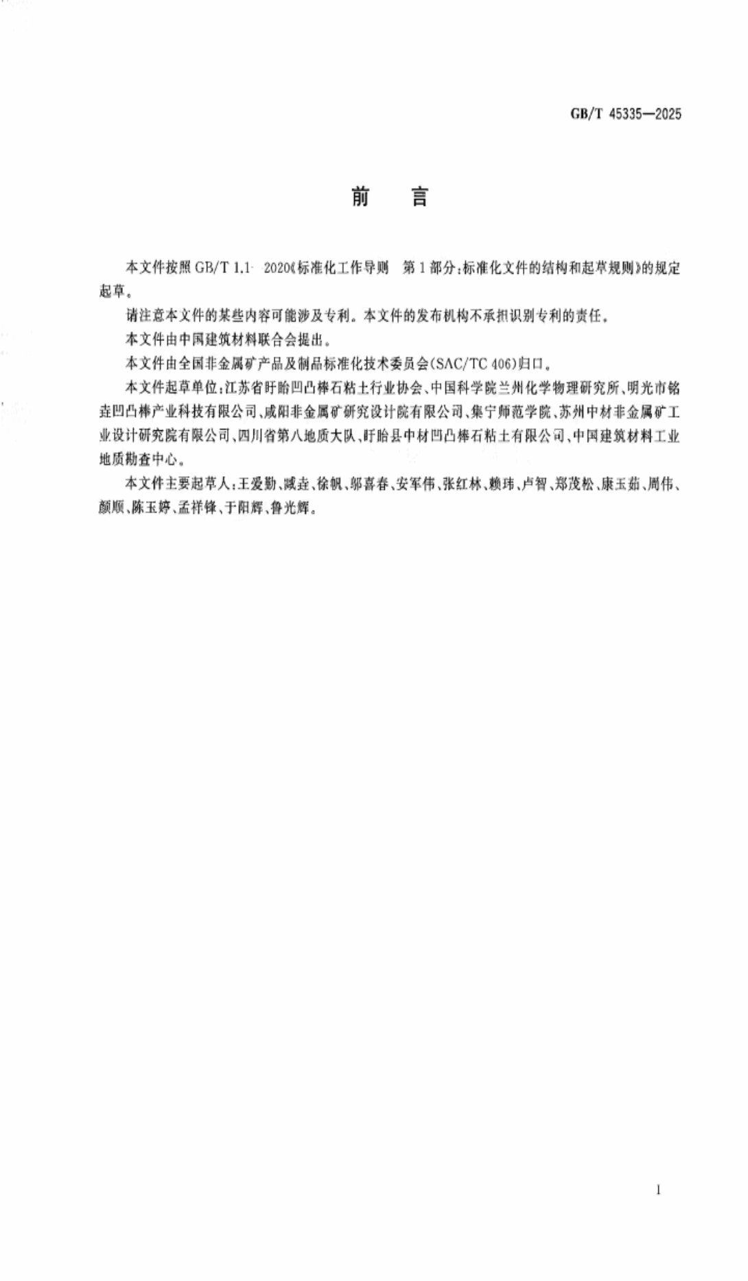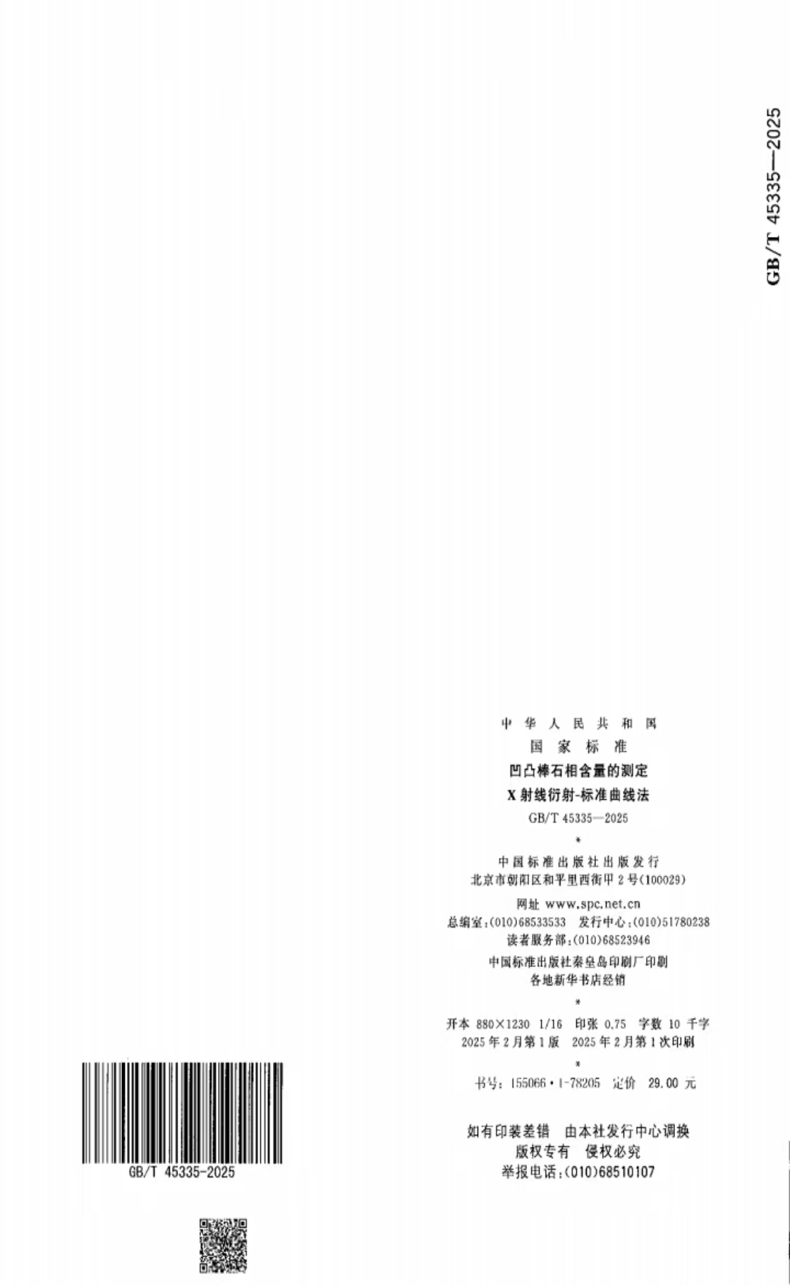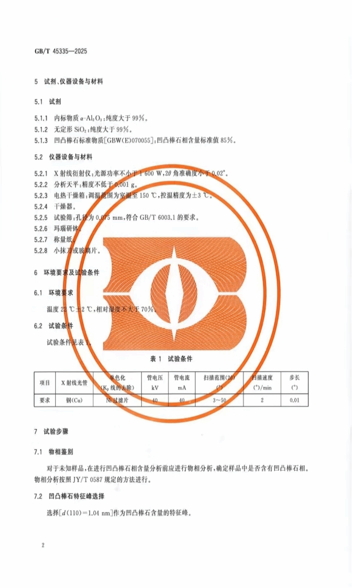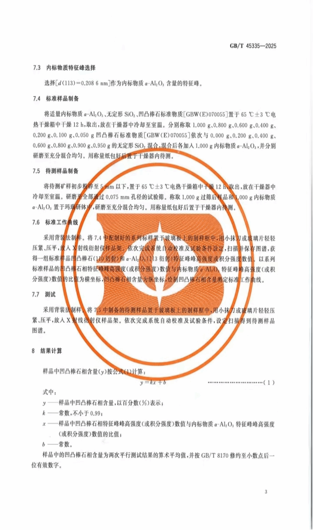 2025年2月28日,国家市场监督管理总局、国家标准化管理委员会联合发布了《凹凸棒石相含量的测定 X射线衍射 - 标准曲线法》(GB/T 45335—2025)。PP电子游戏平台网站积极参与到此项标准的制定过程中,为标准的科学性、严谨性与实用性贡献了重要力量。