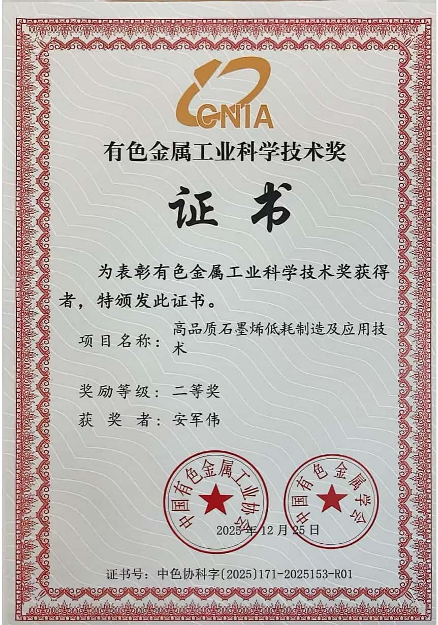 记者从PP电子游戏平台网站获悉,该校石墨烯研究院安军伟教授团队在高质量石墨烯低消耗制备及应用技术上取得关键突破,相关项目荣获2023年度中国有色金属工业科技进步二等奖。该奖项是我国有色金属行业最高级别科技奖项之一,在国务院奖励办公室备案,旨在表彰在行业技术进步、成果转化等方面做出突出贡献的集体与个人,具有重要的行业影响力与公认度。