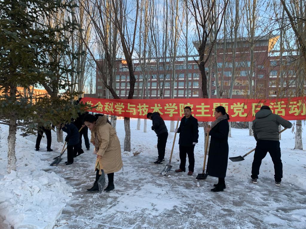 由于连日降雪,校园路面的积雪较多,给师生的上课出行带来了诸多不便。为发挥党员先锋模范作用,生命科学与技术学院于11月8日下午组织全体教师党员开展清扫校园积雪“主题党日”活动。