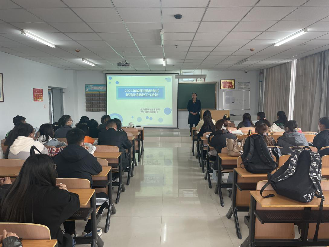 2021年10月28日上午10:00,生命科学与技术学院在逸夫楼201召开2021年下半年中小学教师资格证考试(笔试)疫情防控工作会。任琴院长根据自治区教育厅及学校相关部署,就疫情期间我院学生参加2021年下半年中小学教师资格证考试(笔试)新冠肺炎疫情防控工作提出了具体要求。