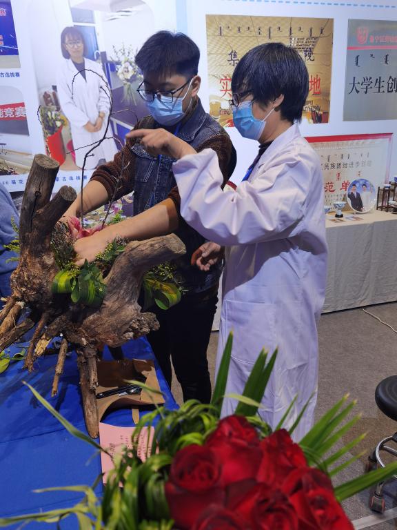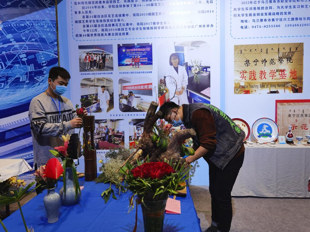 PP电子游戏平台网站生命科学学院园艺专业学生侯城栋、倪昊田、王正、姚悦等4名同学在任琴院长、白雪、张荟等老师的带领下参加了此次活动,并代表乌兰察布市进行花艺技能展示。学校领导对此次活动给予高度重视,PP电子游戏平台网站校党委委员副校长梁政也亲自莅临现场,对展示活动进行检查和指导。
