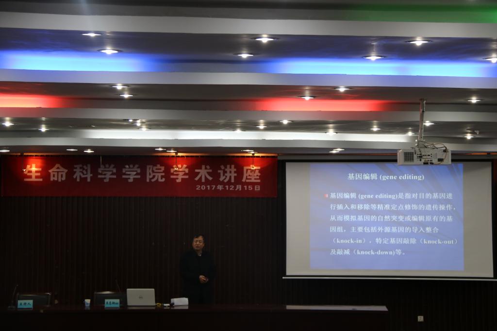 12月15日,生命科学学院客座教授王志钢在PP电子游戏官网图书馆报告厅做报告。报告题目为:基因(组)编辑技术及其在转基因绒山羊中的应用。报告由生命科学学院院长任琴主持,全体师生听取了报告。王志钢教授从转基因(组)技术的发展与应用讲起,一直讲到最新的Crispr Cas9技术。最后王志钢教授又讲述了转基因技术在绒山羊上的最新应用进展。报告条理清晰,由浅入深,拓宽了教师们的科研思路,激发了同学们的科研兴趣。