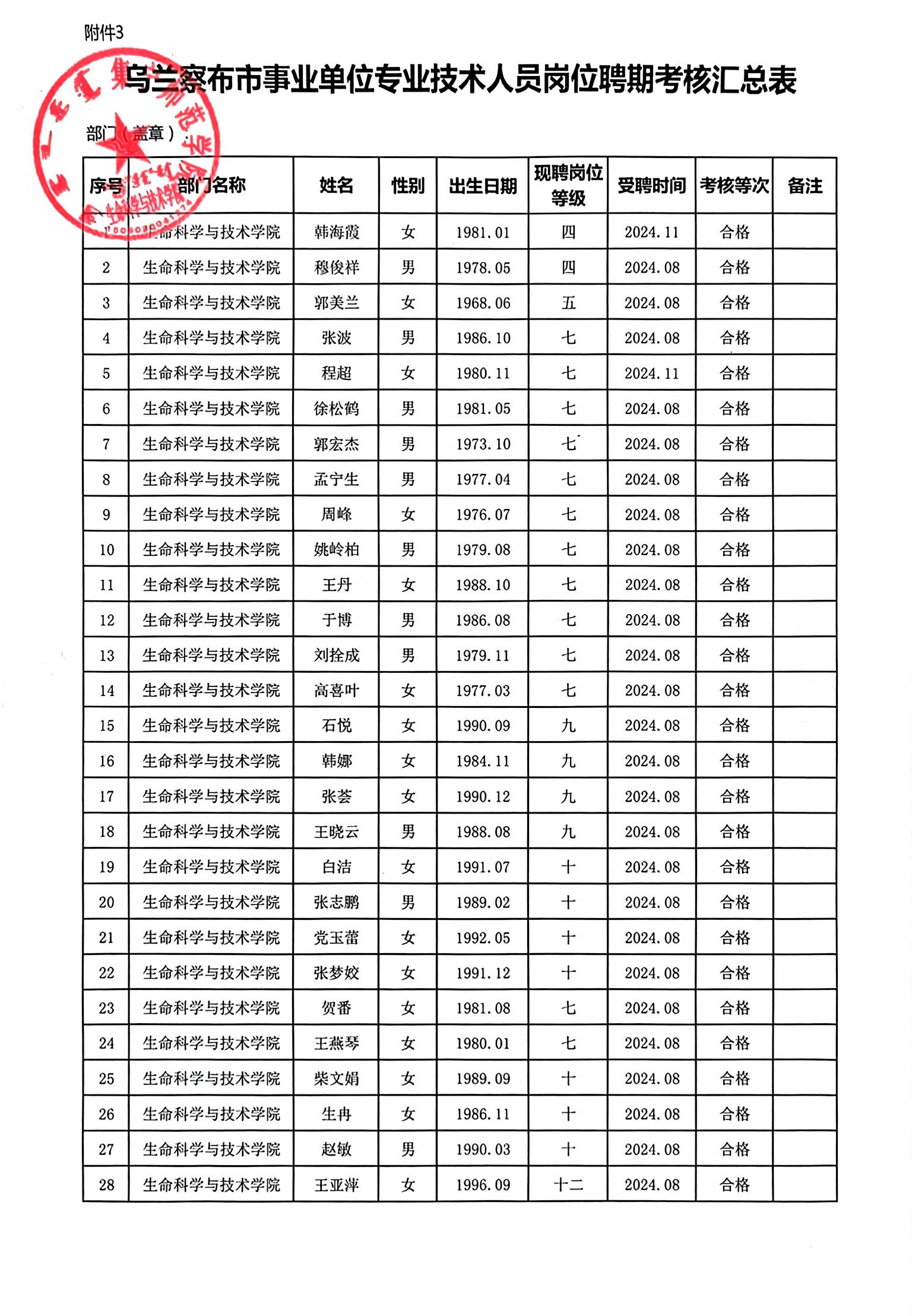 根据学校人事处发布的《关于开展2024—2025年度聘期考核的通知》通知和工作安排,生命科学与技术学院成立聘期考核领导小组,按照《PP电子游戏平台网站关于专业技术人员岗位聘期考核工作实施方案》和《生命科学与技术学院关于专业技术人员岗位聘期考核工作细则》,对学院专业技术人员进行了考核,考核结果公示如下: