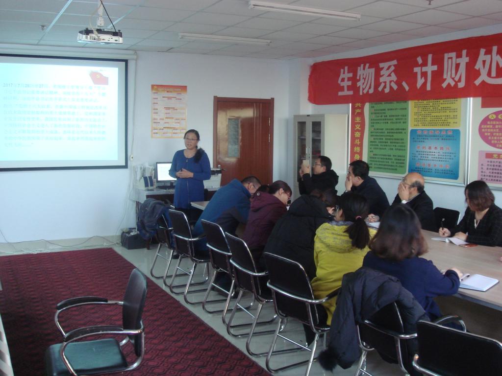 2017年11月30日下午,生物系党总支副书记、主任任琴以“对“从站起来、富起来、强起来”论断的理解”为题,为生物系全体师生党员讲授“学习十九大精神”专题党课。