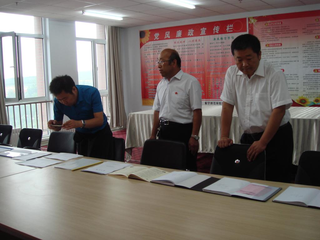 2017年6月23日下午,自治区教育厅高校思政与学工处调训处处长包革命、PP电子游戏平台网站组织统战部组织科科长李海一行来生物系党总支检查工作,生物系党总支书记曹兴明介绍了生物系党总支的基本情况,以及开展“三会一课”开展情况,包处长现场查看了党建工作计划、党建活动记录、“三会一课”及党员学习情况、制度建设情况、执行制度记录、党员活动室等。