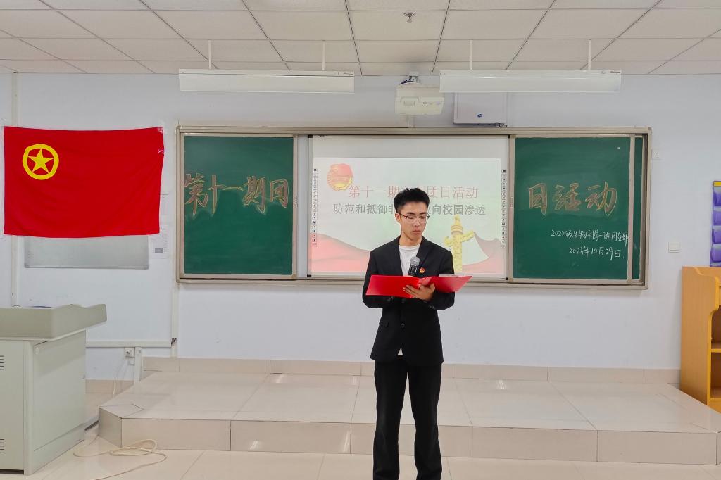 活动第五项,由孙瑞、刘诣翀、曹帅同学带来的朗诵。通过三位同学的朗诵,激荡起每位同学对反对邪教的决心,在一声声反对邪教组织的呼吁中,每位同学更加清晰地明白了要乐观生活,珍惜当下,反对邪教的道理。