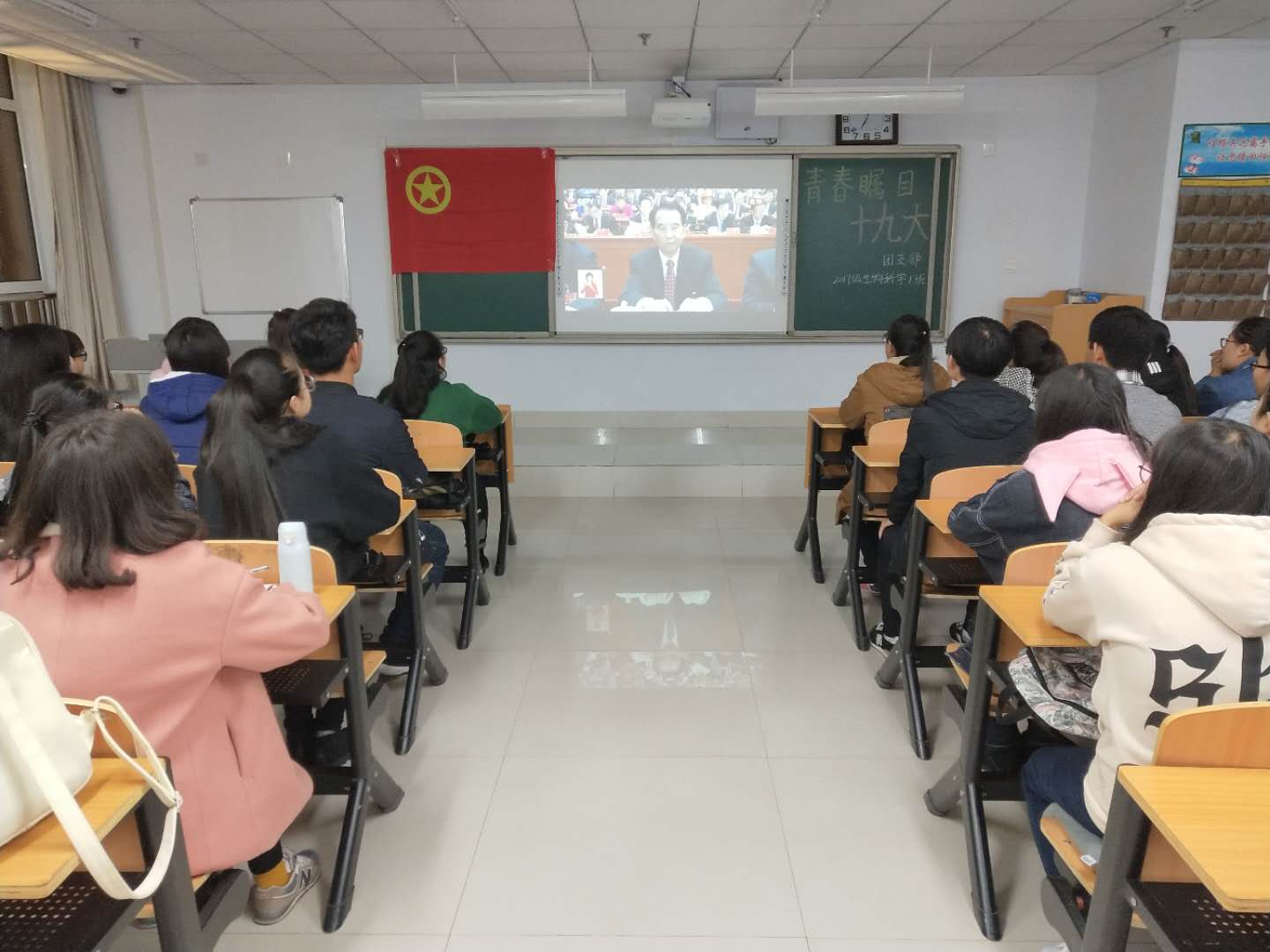 中国共产党的第十九次全国代表大会在北京举行,作为当代大学生我们肩负重任,为了更好的学习此次会议的精神,2017年10月20日PP电子游戏平台网站生物系于逸夫楼204举办了学生干部学习十九大内容的活动,并且此次活动还在网络上进行了一次微学习。当天下午生物系组织各班同学在本班观看了十九大直播视频。