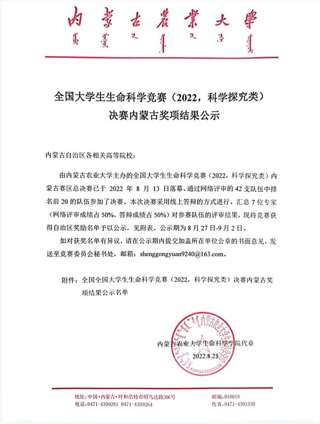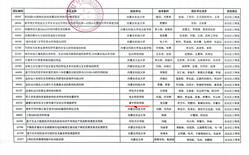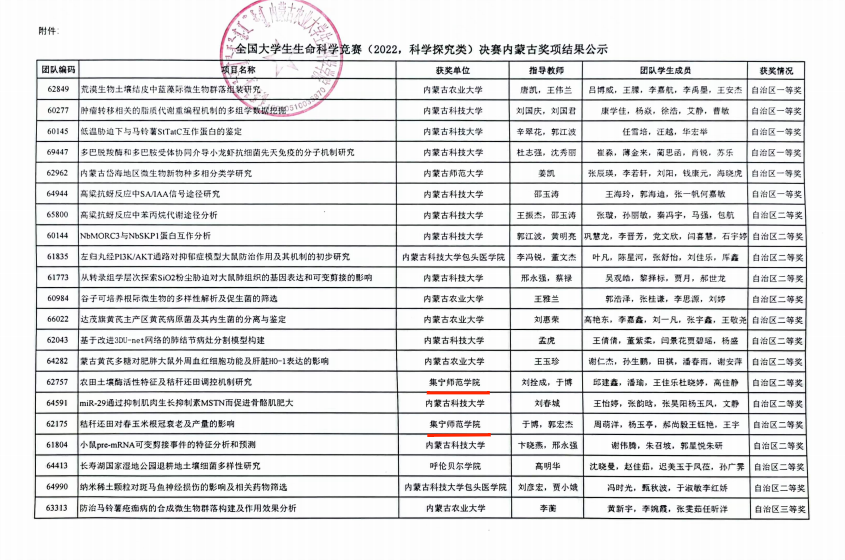 我院学生潘瑜、邱建鑫、周萌洋等15名同学在2022年全国大学生生命科学竞赛(科学探究类)中分别获得自治区二等奖两项、三等奖一项的优异成绩。