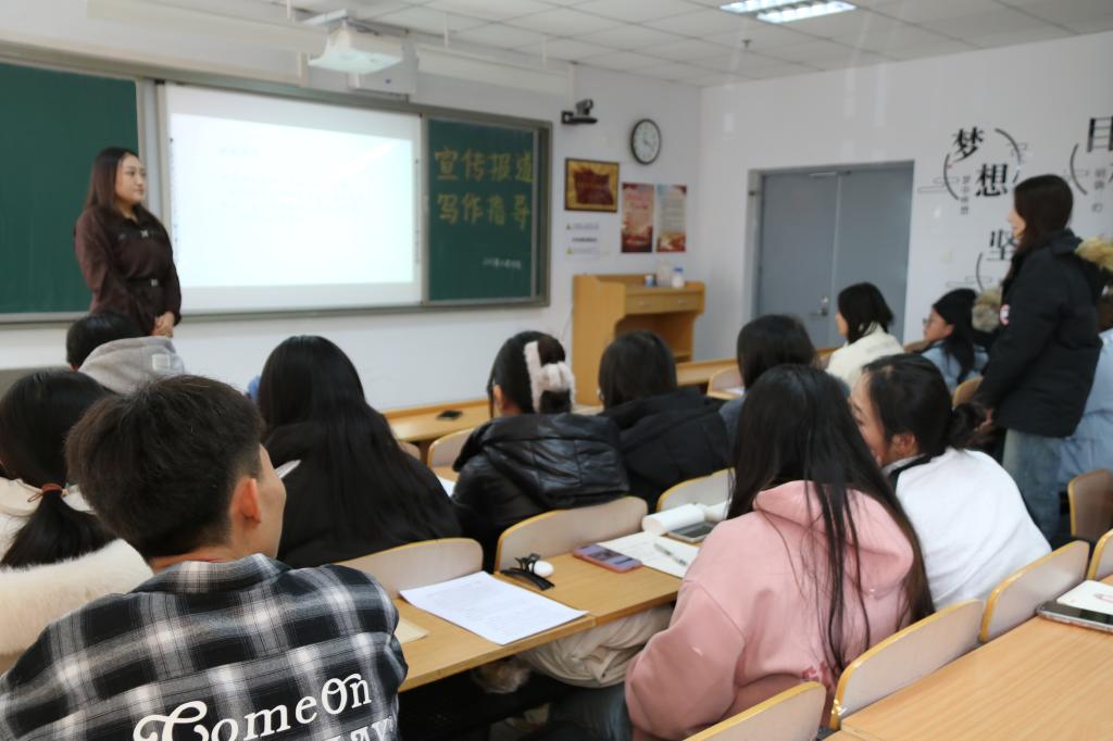 诺琪副主编授课内容生动详实、通俗易懂,具有很强的指导性、启发性和可操作性,同学们收获颇丰,大大提升了宣传报道写作能力。