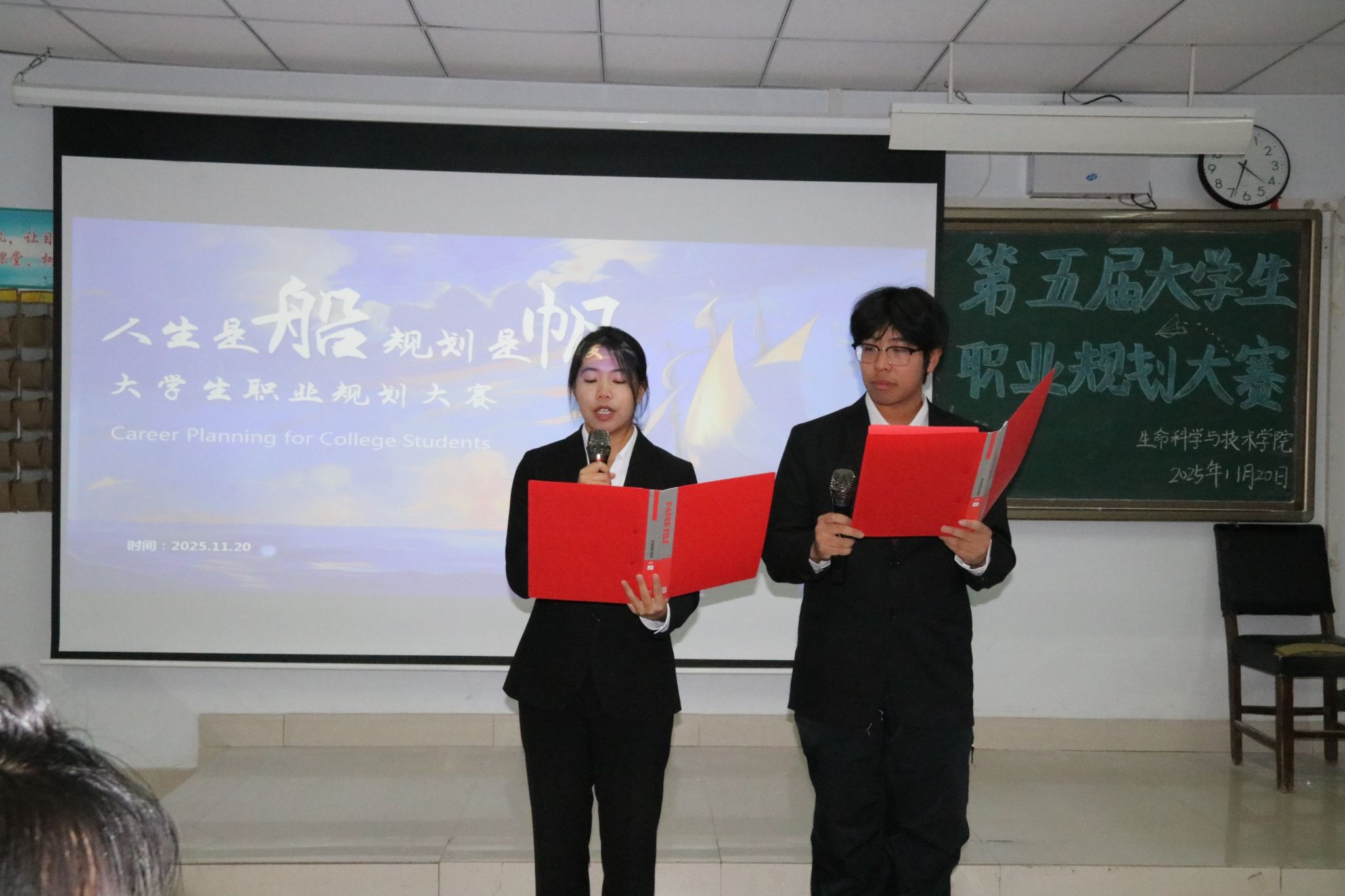 为帮助学生树立正确的职业观念,明确职业方向,提升就业竞争力,生命科学与技术学院于11月20日下午在逸夫楼201室举办第五届大学生职业规划大赛。本次大赛由学团办公室主任张荟和辅导员董雅群担任评委。