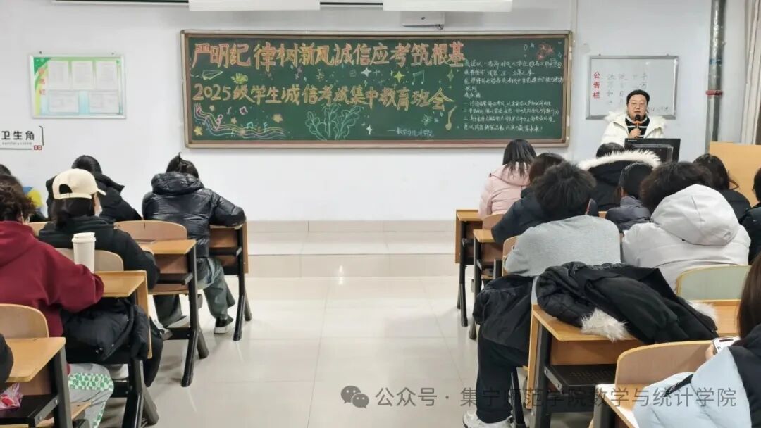 走进大学校园的第一次正式考试,对于每一位新生而言,都是成长路上的一道重要分水岭。12月29日,数学与统计学院于逸夫楼2Y301开展“严明纪律树新风,诚信应考筑根基”2025级学生诚信考试集中教育班会。我院党总支副书记常鑫、学团办公室副主任刘紫玉和班主任张瑜参与本次会议。