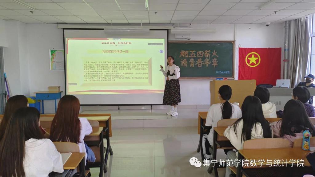 为大力弘扬“五四”精神,扎实提高青年精神素养,我院团总支于5月14日在逸夫楼301开展第二期主题团课学习。本次主题团课由2020级数学与应用数学一班团支部书记史可带领各班团支部围绕“奋斗百年路,启航新征程”、“扬五四薪火,谱青春华章”、“与青春同行,与梦想同路”,“举五四火炬,做时代先锋”等四个主题进行学习。