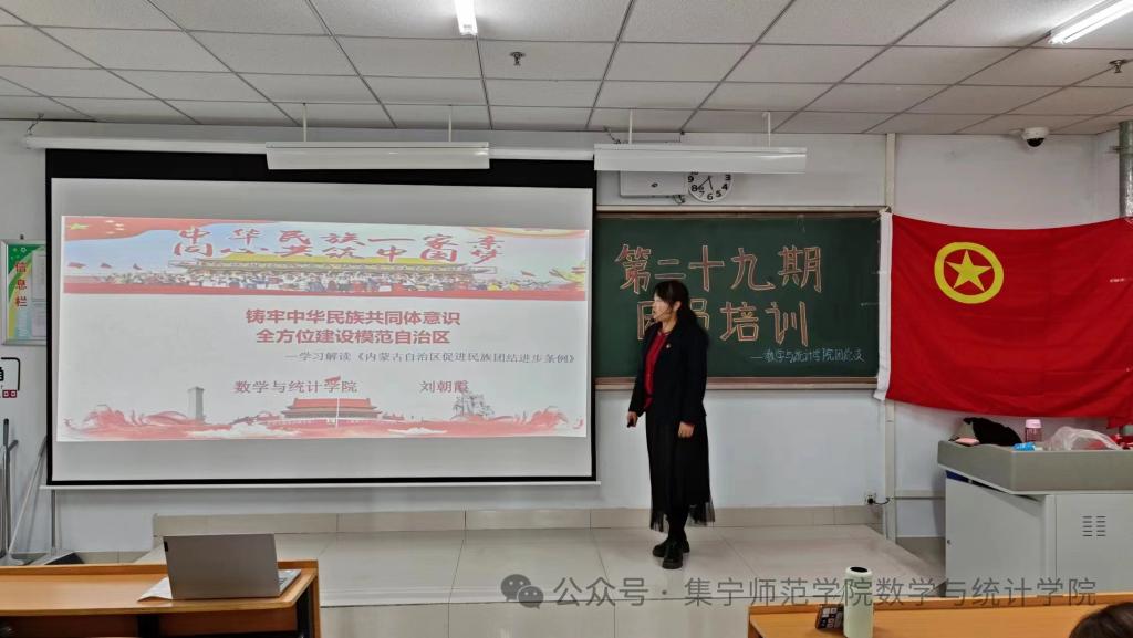 学生党支部书记刘朝霞开展主题为“民族团结一家亲,同心共筑中国梦”的团员培训。培训主要号召全国各族人民同心同德、凝心聚力,高举民族团结的旗帜,正向着第二个百年奋斗目标,向着实现中华民族伟大复兴的中国梦阔步前行!