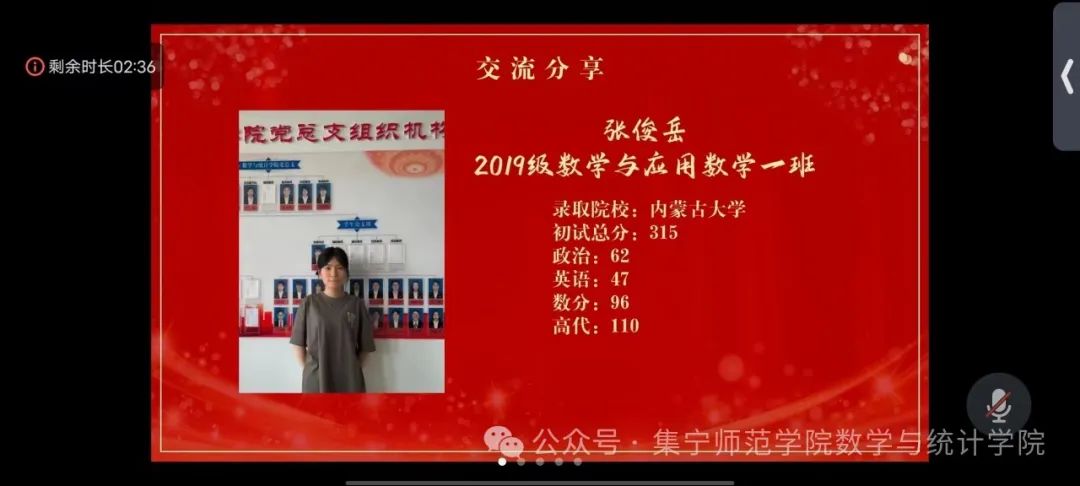 “长关漫道书为马,铁戟金戈笔作枪。”考研,就像是一场漫长而又充实的马拉松。它既是知识的积累,也是意志的考验。为了帮助准备考研的学生能更好地了解考试的形式和难度,从而做好充分的心理准备。数学与统计学院团总支开展“我为同学办实事”主题团日活动,邀请考研上岸同学,张俊岳、赵雪娇为在校学弟学妹们分享考研经验。
