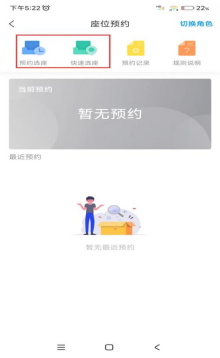 ·快速选座:点击首页“快速选座”按钮,设置筛选条件后,系统将自动为您分配符合条件的座位,特别适合“随遇而安”型的预约需求。