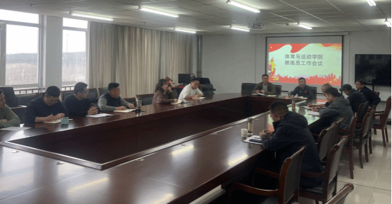 3月13日下午4:30,体育与运动学院在会议室召开教练员工作会议,侯勇院长、李欣副院长、体育教育系主任郝文龙、竞赛与训练部主任成立章以及各训练队教练员出席会议。