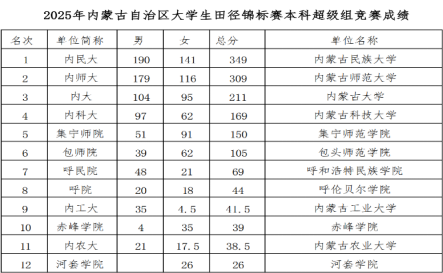 2025年7月4日,内蒙古自治区大学生田径锦标赛在内蒙古师范大学赛罕校区圆满落幕。本次比赛由内蒙古自治区教育厅主办,内蒙古学生体育协会执行,为期5天,吸引了全区46所高校的61支队伍、1200余名运动员参赛。