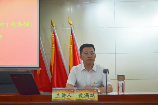 敖满斌结合长期工作实际,从“什么是统一战线,新时代为什么需要统一战线,新时代建设什么样的统一战线,怎样建设新时代统一战线”四个方面全面解读和详细阐述了习近平总书记关于加强和改进统一战线工作的重要思想、《中国共产党统一战线工作条例》,明确了下一步工作的方向、目标、任务和措施。敖满斌强调,认真学习宣传贯彻《中国共产党统一战线工作条例》,要抓好学习培训和宣讲解读,要细化实化工作举措,要着力解决突出问题,要切实强化督促检查。