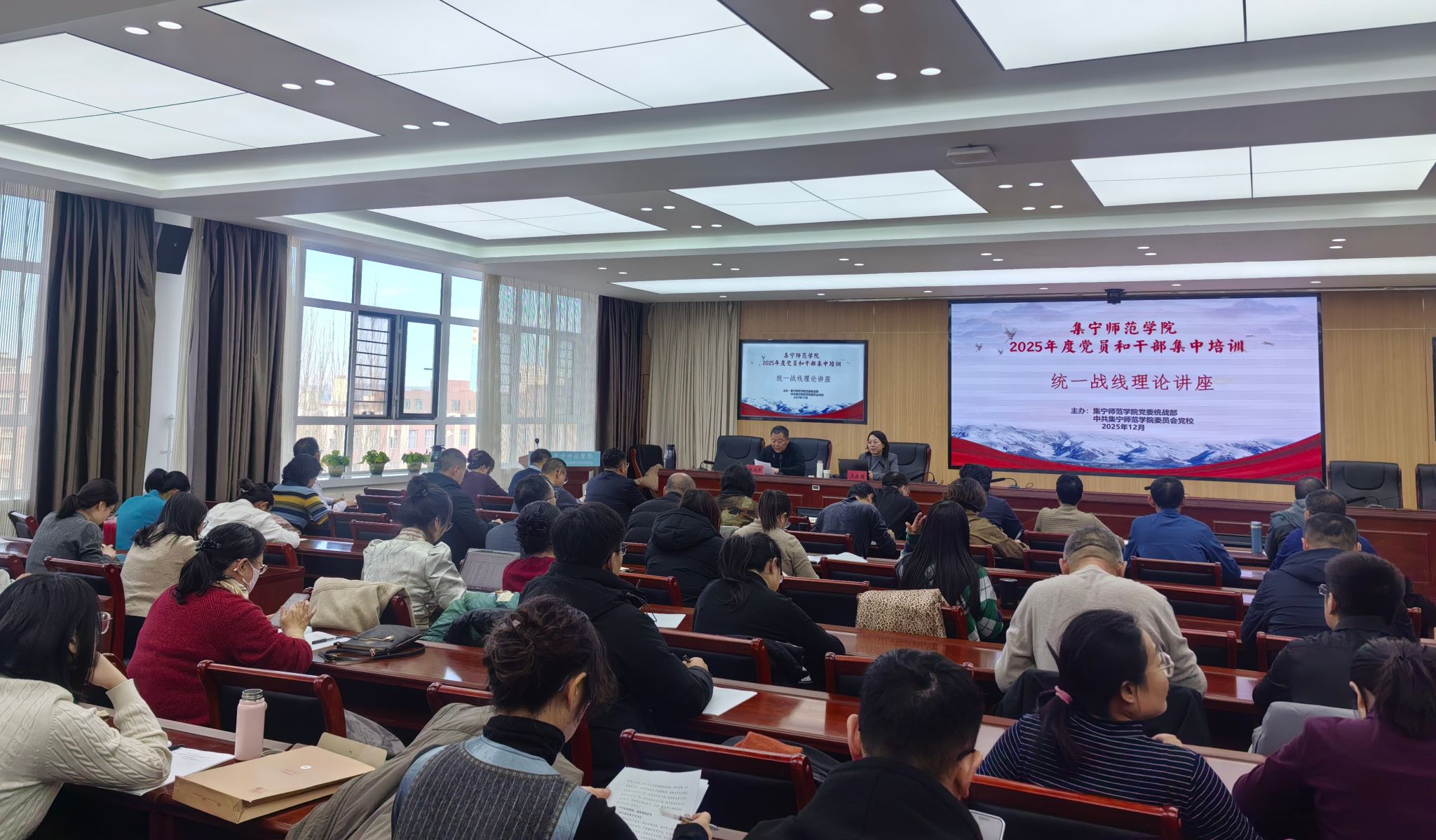 为深入学习贯彻习近平总书记关于加强和改进民族工作的重要思想,有形有感有效深化铸牢中华民族共同体意识教育,推进中华民族共同体建设,根据学校2025年度党员和干部集中培训工作方案要求,12月19日,党委统战部邀请乌兰察布市社会主义学院副院长王永丽教授作“学习习近平总书记关于铸牢中华民族共同体意识的重要论述”专题讲座。各党总支、直属党支部书记、统战委员,各学院学团办主任、教工支部书记、学工支部书记、专职辅导员,附中党委书记、统战委员以及PP电子游戏官网党委统战部全体人员近80人参加会议。会议由党委委员、统战部部长赵向军主持。