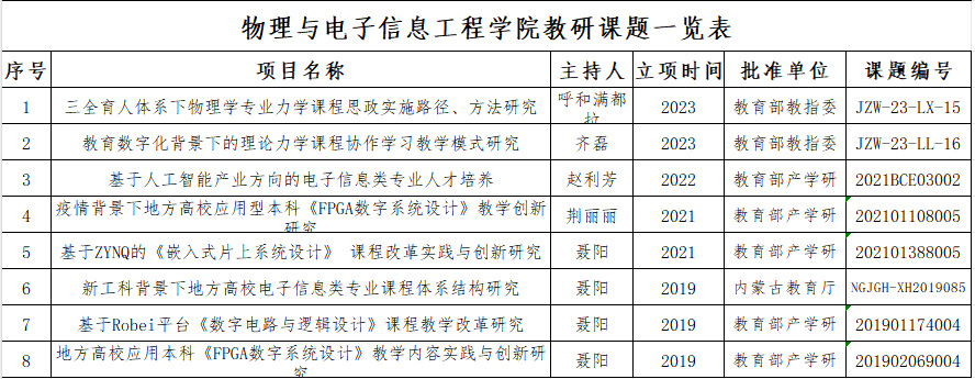 物理与电子信息工程学院教研课题一览表