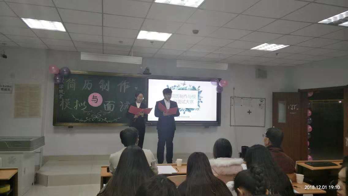 为了让以后步入社会、走上求职道路的学子们能够增加就业信心,提高面试的成功率,物理学院于12月1日在逸夫楼Y405组织举办了简历制作与模拟面试大赛。莅临本次大赛的嘉宾有陈宗黎老师、外国语学院主席以及生活部副部长、文学院学生会主席团代表。