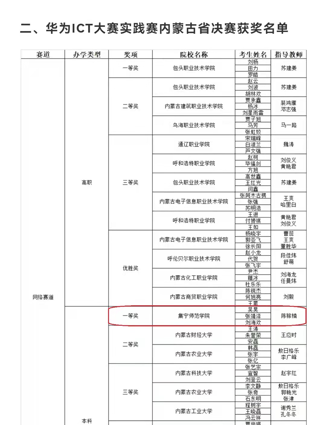 11月13日,华为中国大学生ICT大赛2021实践赛内蒙古省赛决赛中,物理与电子信息工程学院2021级专升本学生吴昊、张敬泽和刘海欢组队,代表PP电子游戏平台网站获得网络赛道本科高校一等奖,并晋级国赛。