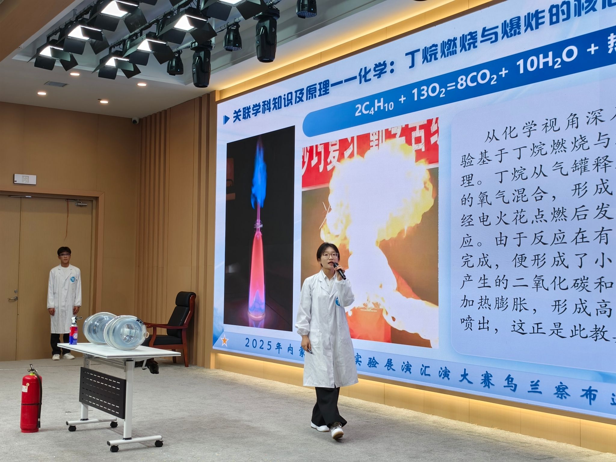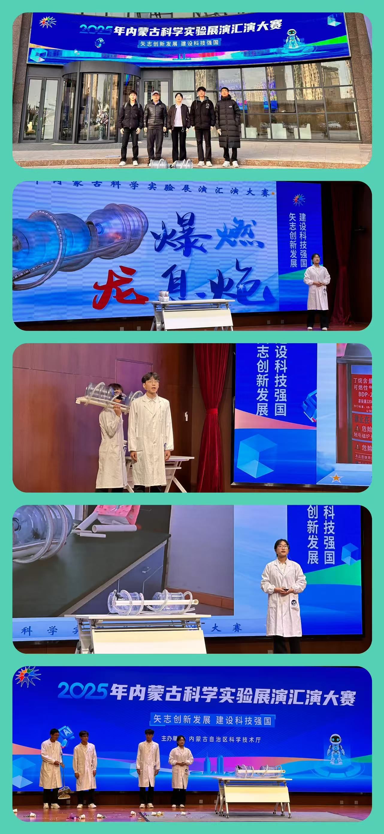 10月25日,由自治区科技厅主办2025年内蒙古科学实验展演汇演大赛在呼和浩特市科创中心二楼多功能厅圆满落幕。乌兰察布市通过层层选拔,最终选派3支代表队参加了自治区决赛,我院1支队伍成功晋级决赛。经过激烈角逐,物理与电子信息工程学院选送的科学实验展演作品《爆燃龙息炮》凭借精心的设计、精彩的展示,成功斩获三等奖。