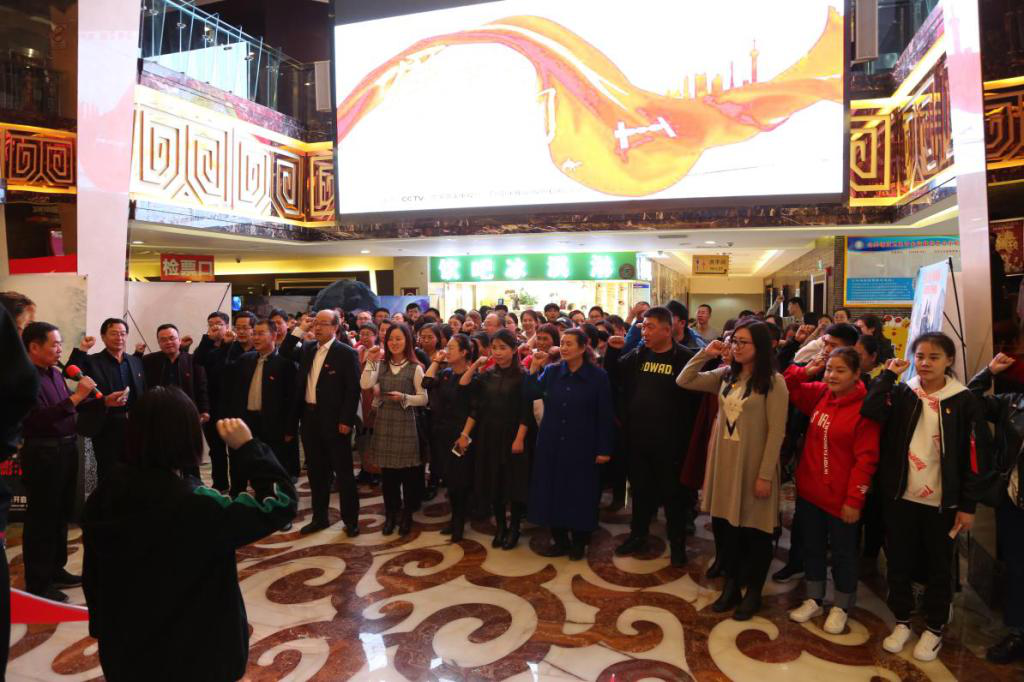 观看电影之前,全体党员进行了宣誓活动,重温入党誓词,主动而自觉地接受组织观念、思想理念和党性修养教育。