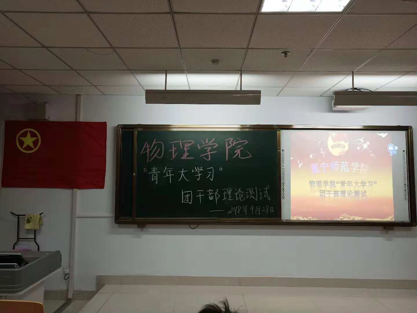 为了深入学习宣传贯彻习近平新时代中国特色社会主义思想和党的十九大精神,了解同学们对习近平新时代中国特色社会主义思想的认识,考查我院青年大学生关于共青团知识理论及党的十九大精神的学习成果。按照团委“青年大学习”行动的工作部署,9月28日晚七点,物理学院进行了“青年大学习”理论知识闭卷考试。参加人员有团总支干部、各个班级团支部干部和班级干部。并由赵鹏宇老师和马振寰老师监考。