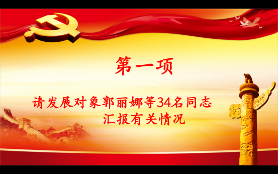 会议初始,支部书记介绍会议流程和会议纪律,确认参会人员全部到齐,强调本次会议本着“公平、公正、公开”的原则,严格按照发展党员程序执行。会上,发展对象从对党的认识、政治信念、入党动机等发表了自己的想法并积极向党组织汇报了这一年来的思想和工作等情况,表达了强烈的入党愿望。入党介绍人根据对预备党员的考察情况进行汇报,提出同意接纳预备党员的意见,入会党员对其入党问题进行了讨论。随后全体正式党员采用无记名投票的方式进行投票表诀,最后郭丽娜等16名同志被成功接收为预备党员,学生党支部书记马振寰对刚刚吸纳进党组织的预备党员们表示祝贺,希望他们今后能够按照党员的标准更加严格的要求自己,精进学业、认真工作,不断提升党性修养,时刻发挥党员的先锋模范作用。