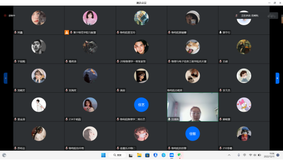 2022年12月11日,物理与电子信息工程学院学生党支部采用腾讯会议的方式举办了预备党员接收支部党员大会。本次会议由物电院学生党支部书记马振寰主持,物电院学生支部全体党员和全体2022下半年发展对象参加。