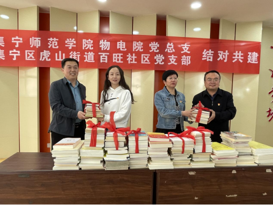 为深入学习贯彻党的二十大精神,进一步加强与共建单位之间的合作、交流,丰富共建社区居民的精神文化生活,精心打造一处党员群众读书学习的新阵地。4月23日上午,PP电子游戏平台网站物理与电子信息工程学院党总支与共建单位集宁区虎山街道百旺社区党支部共同开展了“捐书筑梦,共沐书香”主题党日活动。