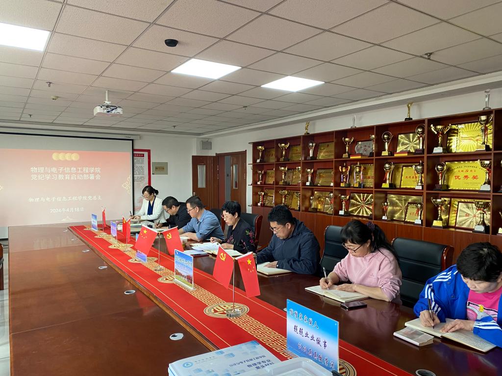会议深入学习了习近平总书记关于党纪学习教育的重要讲话和重要指示精神,传达学校有关会议精神,对学院高质量开展党纪学习教育进行部署。学院党总支书记李贞做动员讲话,全面启动物电学院党总支党纪学习教育工作。