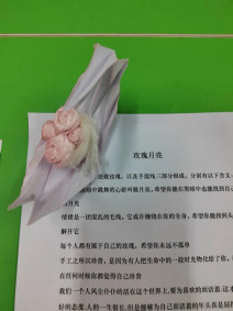 林卓纳《玫瑰月亮》作品简介:折纸做的月亮,餐巾纸做的玫瑰以及手混线三部分组成,分别有以下含义:人们把黑暗中跳舞的心脏叫做月亮,希望你也能在黑暗中找到自己的月光。每个人都有属于自己的玫瑰,我希望你永不孤单。