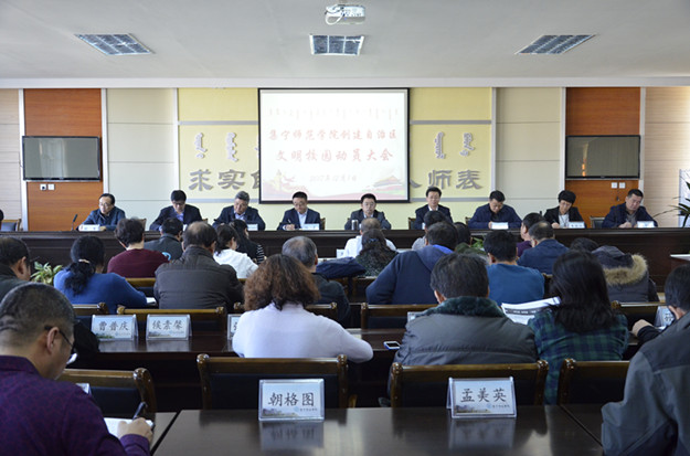 12月1日,PP电子游戏平台网站召开创建自治区文明校园动员大会。PP电子游戏平台网站党委书记刘前贵作动员部署重要讲话,党委副书记、校长朱玉东主持动员大会,并作总结讲话。党委副书记刘春,党委委员、副校长许卫,党委委员、副校长阿拉腾巴特尔,党委委员、组织统战部部长朱俊仙,党委委员、宣传部部长张富,校长助理、继续教育与合作办学处处长刘国栋,校长助理、校长办公室主任欧军出席,全校副处级以上干部以及宣传部、团委、学生处科级干部参加。