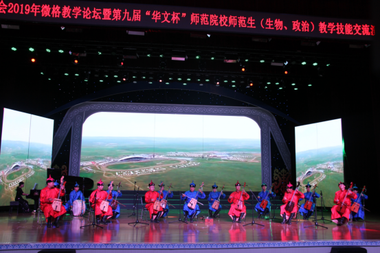 教师合唱迎宾曲《美丽的草原我的家》以悠扬动听的旋律展现了草原人民的热情以及对远方客人欢迎。马头琴合奏《黑木日》以蒙古族长调、呼麦和马头琴演奏的动人婉转旋律为嘉宾献上满含民族特色的视听盛宴。