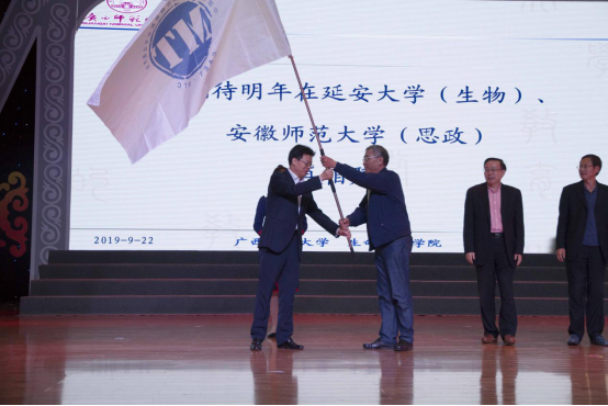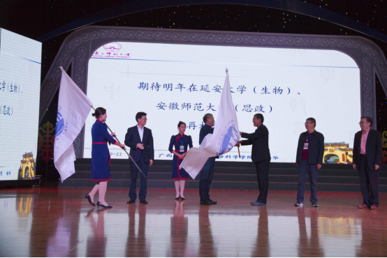 活动中宣布了下一届的举办,朱玉东校长、孟宪凯理事长与下届开展活动的学校进行会旗交接。