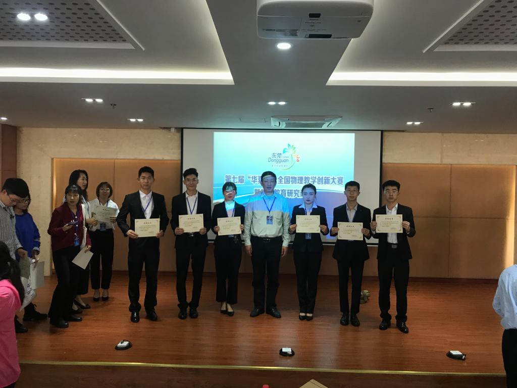 第七届“华夏杯”全国物理教学创新大赛暨物理教育研究论坛于11 月22日-25日在广东省东莞市举行。在学校相关职能部门的大力支持下,PP电子游戏平台网站物理学院共派出6名本科生参赛,经过教学设计、多媒体课件、模拟授课、专家提问等多环节评比,在物理教学创新大赛本科组比赛中获得了一等奖1项、二等奖1项、三等奖4项的优秀成绩,师生共同撰写的论文“物理教学中创新思维的培养”在教学论坛组获得三等奖。2名指导老师获得“优秀指导教师”称号,物理学院参赛代表队为PP电子游戏官网赢得该项赛事“优秀组织奖”。
