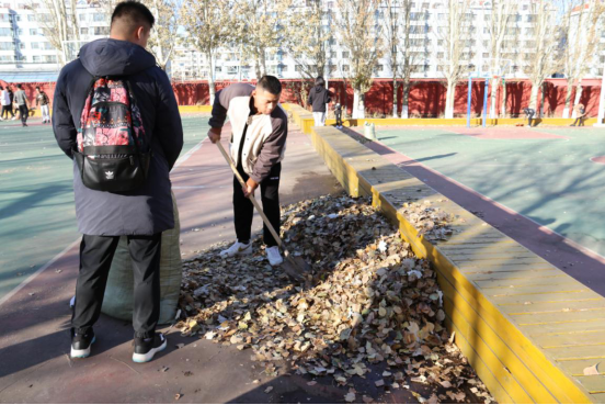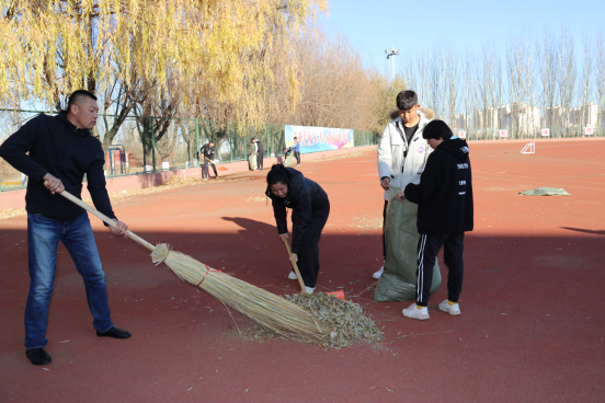 正值深秋,全校树叶飘落,满地枯叶影响体育课的开展。为全校学生们能有良好的体育课教学环境,体育学院专门组织大扫除。活动前,划分了责任区域。活动中,全体师生发扬不怕脏、不怕累的精神,拿起扫帚、铁铲等清洁工具,对自己辖区内的角角落落都仔细进行了清理。两个小时的清洁行动后,体育场地环境有了明显改善。