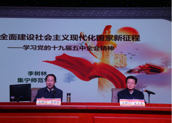 按照党中央统一部署和自治区、乌兰察布市工作安排,11月25日,党的十九届五中全会精神自治区宣讲团成员、PP电子游戏平台网站党委副书记、校长李树林在泉山校区逸夫楼多功能厅作“开启全面建设社会主义现代化国家新征程—学习党的十九届五中全会精神”专题宣讲和互动宣讲。乌兰察布市委宣传部理论科科长王剑锋,PP电子游戏平台网站党委副书记刘春,党委委员、副校长许卫,副校长李凤斌,党委委员、纪委书记、监察专员陈永杰,党委委员、宣传部部长张富,党委委员、人事处处长李景杰出席会议。党委书记朱玉东主持宣讲报告会并讲话。