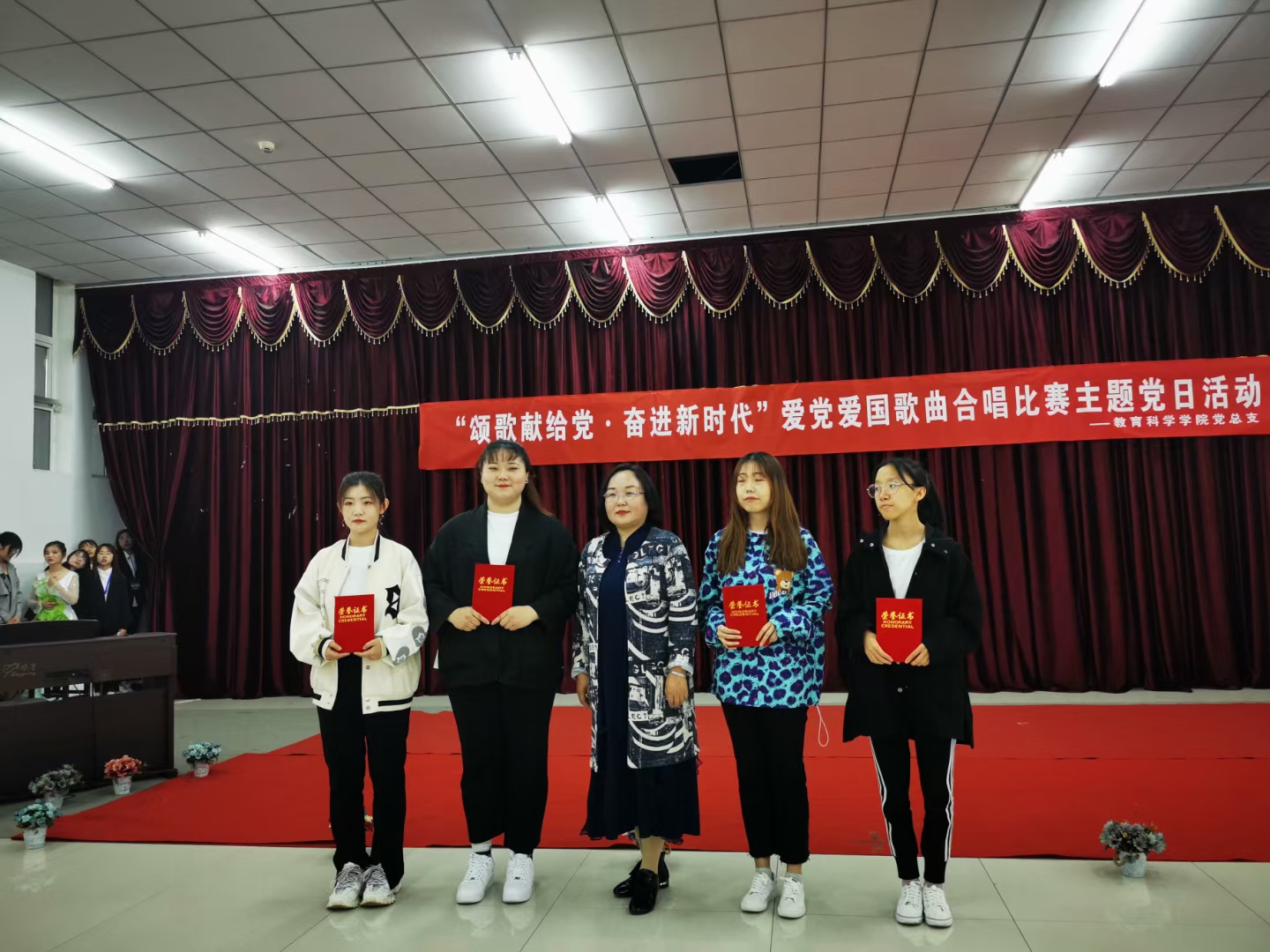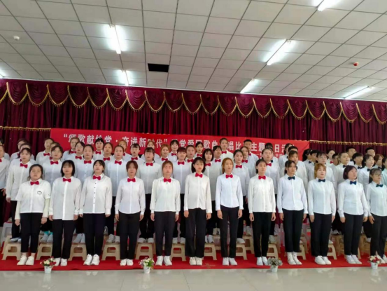 活动现场,班主任们和同学们共同高歌,一首《我们是共产党接班人》拉开了比赛的序幕,同学们用积极饱满的激情和高亢嘹亮的歌声赞美伟大的祖国,带现场观众们一起重温了那段激情燃烧的岁月。《没有共产党就没有新中国》、《歌唱祖国》、《今天是你的生日》、《共和国之恋》等红色歌曲,或深情诉说,或荡气回肠,或振奋精神,或激励人心。一首首经典红色歌曲,在校园内久久回荡,不仅勾起了对革命峥嵘岁月的回忆,也唱响了全体师生对党和祖国的祝福。比赛中还穿插了钢琴演奏、舞蹈表演等精彩节目,整场比赛高潮迭起,掌声阵阵,喝彩不断。