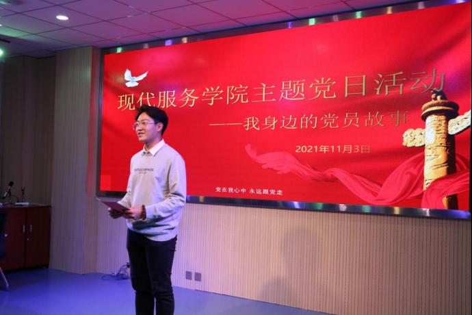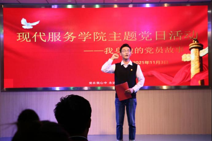 11月3日,现代服务学院开展“我身边的党员故事”主题党日活动,活动由现代服务学院学工支部书记赵思捷主持,朱玉东书记以普通党员身份参加了此次主题党日活动。