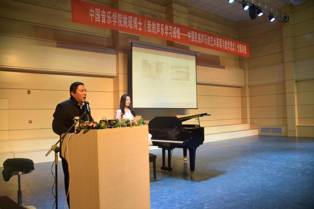 10月24日下午,中国音乐学院姚瑶博士应教务处、音乐学院之邀来PP电子游戏官网作《我的声乐学习感悟——中国民族声乐的艺术表现与教学理念》教学专题讲座。讲座在音乐学院报告厅举行。音乐学院院长白志文主持,教务处副处长孙振涛作了总结评价。音乐学院师生、乌兰察布艺术学校声乐教师和集宁地区音乐工作者共260余人到场聆听。
