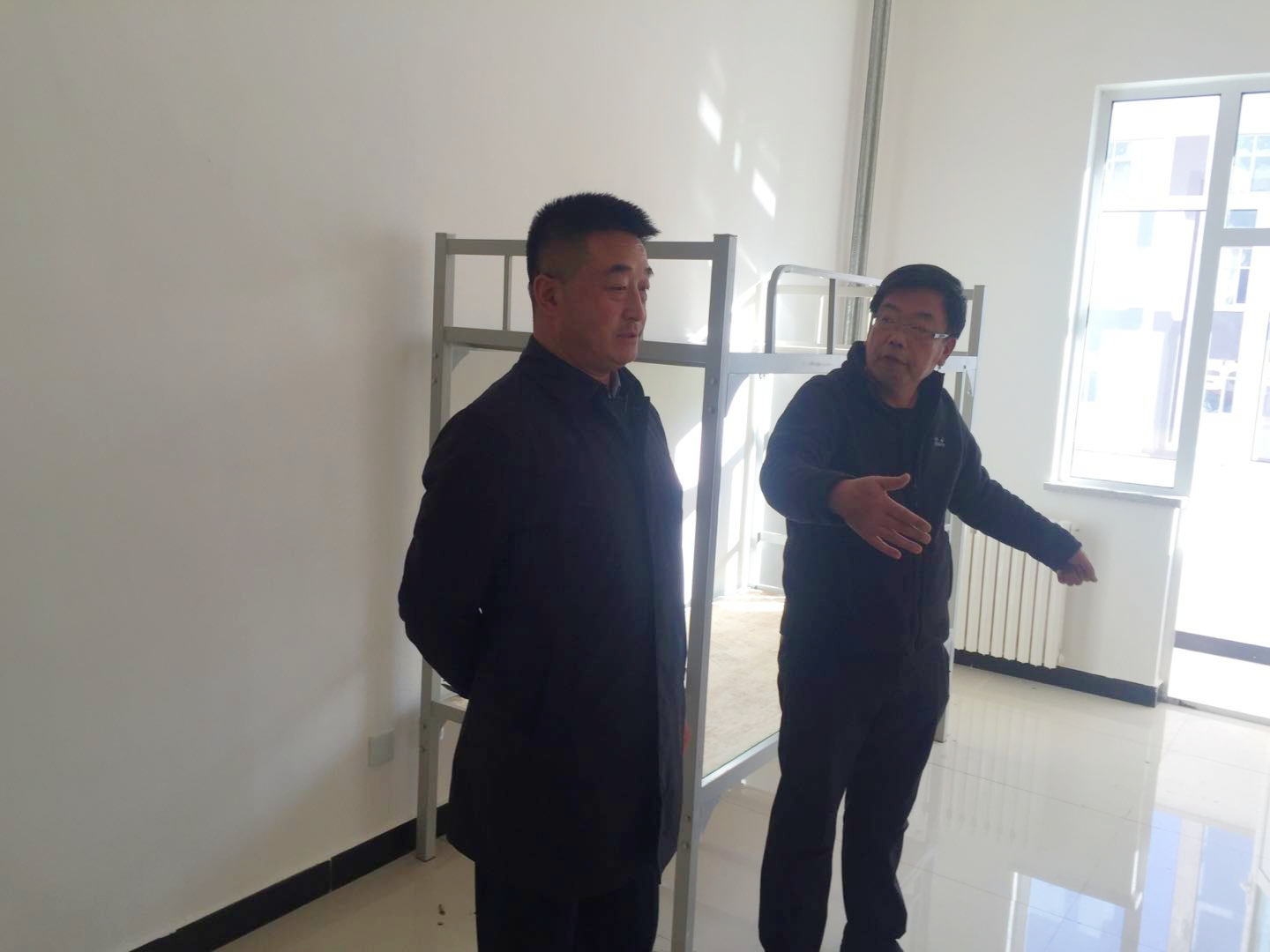 刘春还走访调研了新建学生公寓楼。对新楼设施配置进展情况,及近期学生搬迁准备工作情况进行询问和了解。