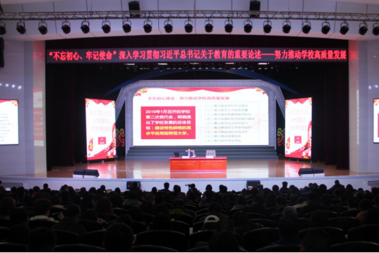 朱玉东主要围绕把握主题教育的目标要求,深入贯彻学习习近平总书记关于教育的论述,不忘初心使命、努力推动学校高质量发展三方面讲授。他指出,要认真贯彻“守初心、担使命,找差距、抓落实”的主题教育目标总要求,牢牢把握“理论学习有收获、思想政治受洗礼、干事创业敢担当、为民服务解难题、清正廉洁作表率”目标任务,落实重点措施,努力取得最好成效。他强调,要深刻理解把握加强党对教育事业全面领导的根本要求、立德树人的根本任务、优先发展教育事业的战略部署、坚持社会主义办学方向的政治原则、扎根中国大地办教育的坚定自信、以人民为中心发展教育的价值追求、深化教育改革创新的鲜明导向、服务中华民族伟大复兴的使命担当、服务中华民族伟大复兴的使命担当的“九个坚持”;要深刻理解把握习近平总书记对教师提出的“三个牢固树立”,做“四有”好老师和“四个引路人”以及“四个相统一”等要求;要深刻理解把握习近平总书记对青年提出的珍惜青春、树立梦想、勤奋学习、勇于创新创业等要求。要从推进学科专业建设、提升人才培养质量、建设高素质教师队伍、加强科技创新能力建设、提升社会服务能力、推进文化传承与创新、推进国际交流合作、推动改革创新、提升师生福祉八方面着力,努力推动学校高质量发展,为把学校建设特色鲜明的高水平应用型师范大学而努力奋斗。