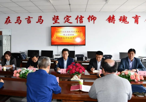 按照内蒙古自治区党委宣传部和内蒙古自治区高等学校工作委员会《关于举办2020年全区高校思想政治理论课教师培训班(第一期)的通知》相关要求,5月15日下午,PP电子游戏平台网站马克思主义学院在逸夫楼会议室举行了自治区高校思想政治理论课教师线上培训班PP电子游戏平台网站开班仪式。开班仪式由马克思主义学院党总支书记戈华主持。党委书记朱玉东,党委副书记刘春,党委委员、副校长梁政出席开班仪式并讲话。